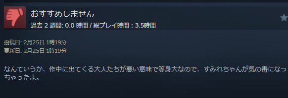 前述の通り、ゲームはなにひとつ悪くはなく、私が悪いです。