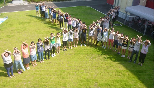 「まっ・く・の・う・ち」のリズムでラウンドアーチを描く高橋君。